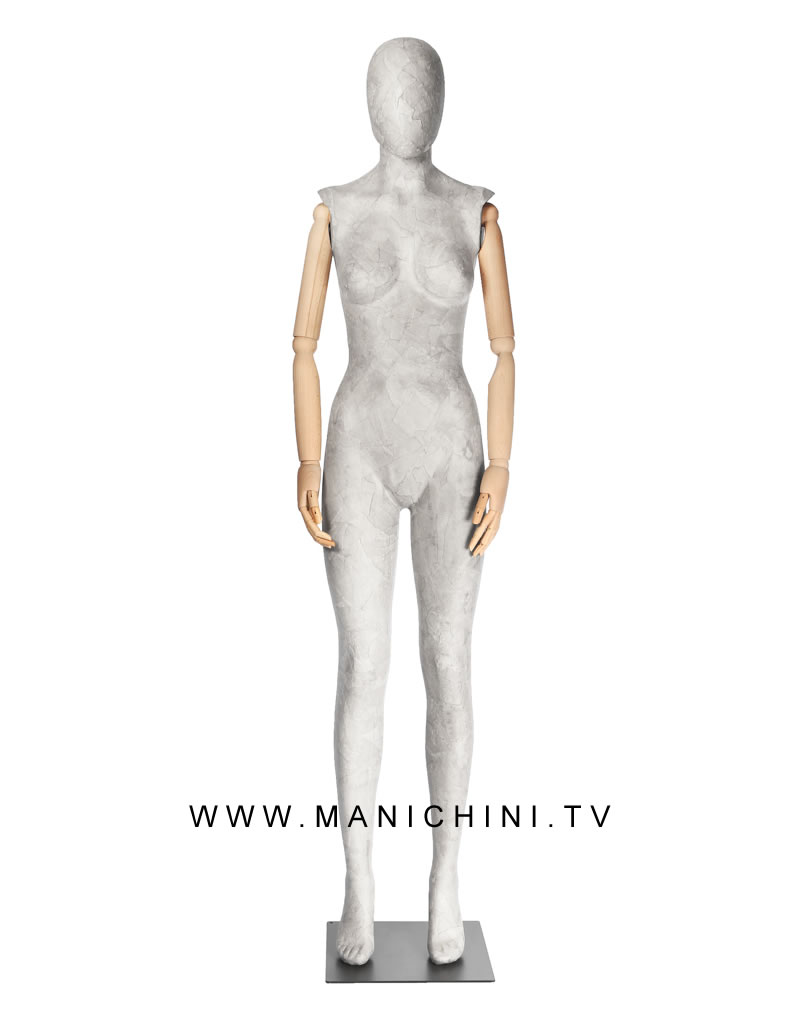 MANICHINO - CARTAPESTA - CEMENTO - LITE - DONNA - LADY - 001 - CON - BRACCIA - IN - LEGNO